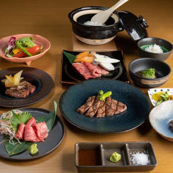ステーキやお刺身、しゃぶしゃぶ等、さまざまなお料理にて、特上の近江牛をご堪能いただけるコースです。