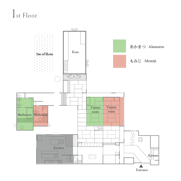 1階は畳のお座敷でお食事や団欒のお時間にごゆっくりお過ごしいただける居間として、2階は寝室としてご利用いただけます。