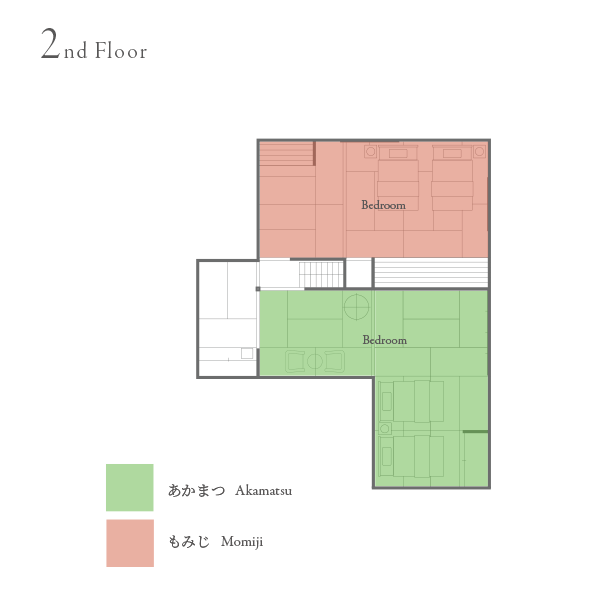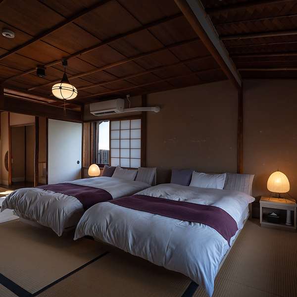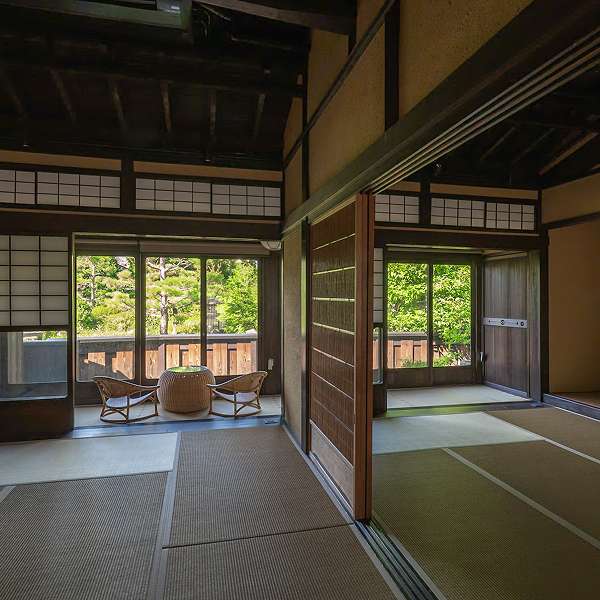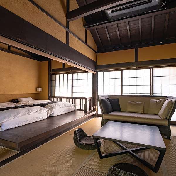 外村宇兵衛邸の1階和室1部屋と2階和室1部屋、大浴場をご利用いただけるメゾネットタイプのお部屋です。