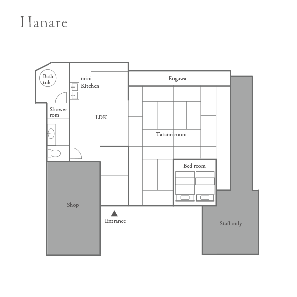 ※お部屋は2フロアに分かれたメゾネットタイプです。階段と廊下は、他のお客様と共用になります。