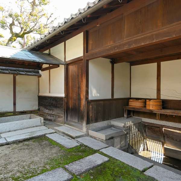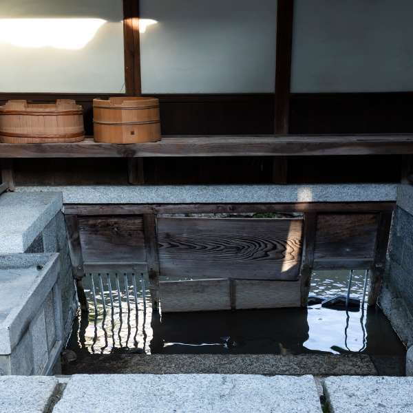 水路から屋敷内に生活用水を引き込んだ「川戸」があります。ここに流れる水は愛知川の伏流水を水源とする清らかな湧き水で、日本遺産「琵琶湖とその水辺景観‐祈りと暮らしの水遺産‐」としても登録されている五個荘の豊かな水のある暮らしの象徴です。地域の人たちは畑で収穫した野菜を洗うなど、今なお水路は暮らしの中に息づいています。